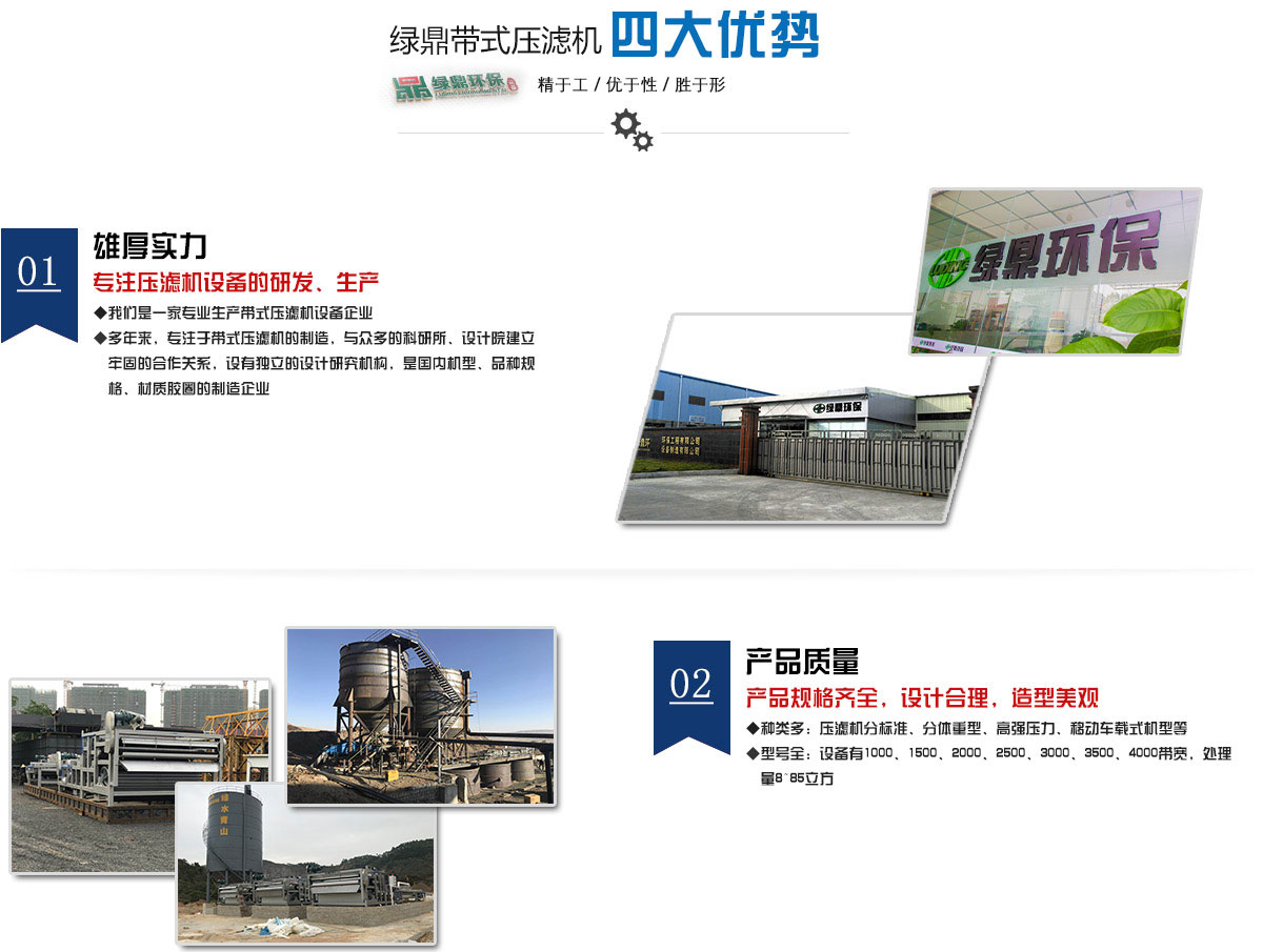 綠鼎帶式壓濾機,專業解決污泥脫水煩惱:礦山泥漿、化工廠、生活污泥、沼氣工程等污泥處理...